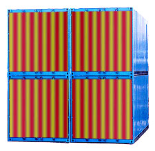 Es sprechen auch praktische Gründe für die imachinative Verwendung von Containern. Ein Container bildet formal eine geschlossene Einheit, die auch, wenn er verhältnismäßig klein ist, in einem größeren Umfeld behaupten kann. Ferner schließt ein Container die geschützte Unterbringung des Beamers und der Technik mit ein. Die in Relation gesehene verhältnismäßig kleine Rückprojektionsfläche ermöglicht es kostengünstige Beamer zu verwenden. Die Container lassen sich darüber hinaus zu Clustern zusammenfassen und können so z.B. zu einer weitaus größeren Präsentation z.B. am Firmensitz genutzt werden. |