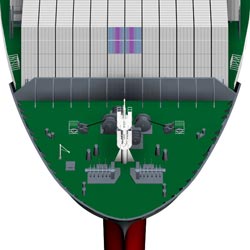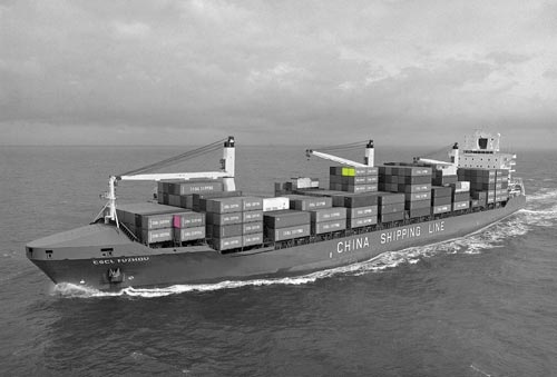 Analog zu den Datenpaketen im Netz ist der Container der Inbegriff der Quantelung materieller Güter. Der Container ist das zeitgenössische Medium des internationalen Warenaustausches. Das Containerschiff ist hierbei als Träger das globale Verbindungsglied, das im Austausch mit anderen Transporträgern wie Binnenschiffen, Zügen etc. steht, die ebenfalls in das Konzept mit eingebaut werden sollen. |